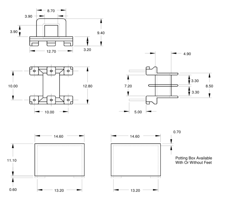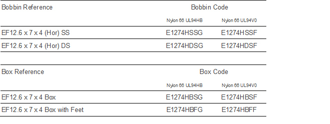 Formers EF12.6 x 7 x 4 (Hor) Bobbin & Box - 0.6mm diameter round pin - dimensions in millimetres