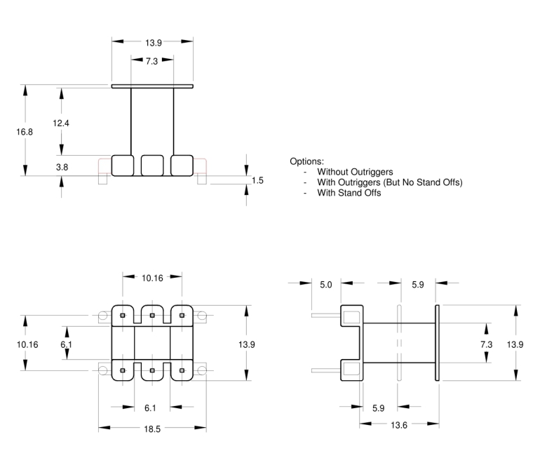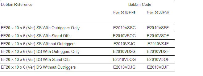 Formers EF20 x 10 x 6 (Ver) Bobbin - 0.635mm square pin - dimensions in millimetres