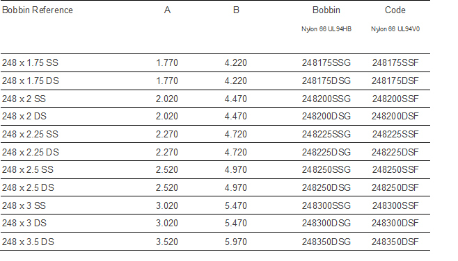 For open end slotted bobbins, replace last but one letter with 'O' (e.g. 248175SOG)