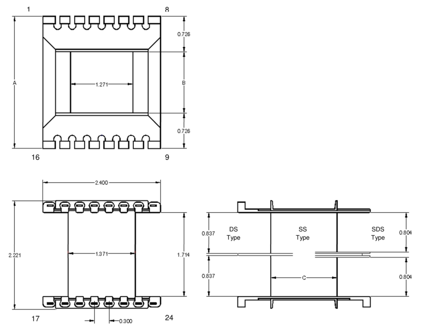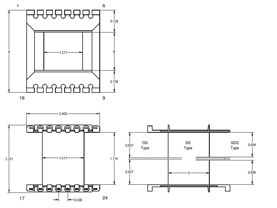 Formers Imperial 78 Tagged Bobbin - dimensions in inches - 24 terminal bobbin: 3 rows of 8 tags