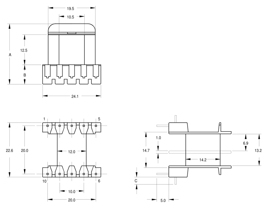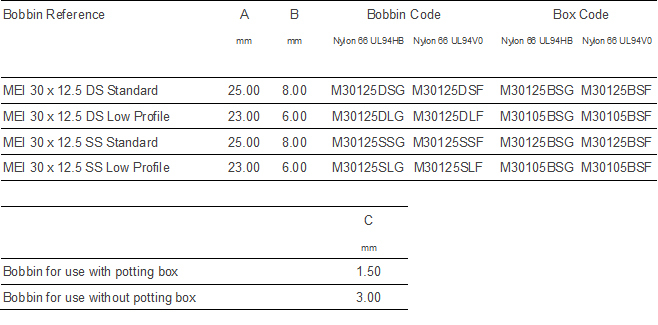 Formers MEI 30 x 12.5 Bobbin - 0.635 square pin - dimensions in millimetres