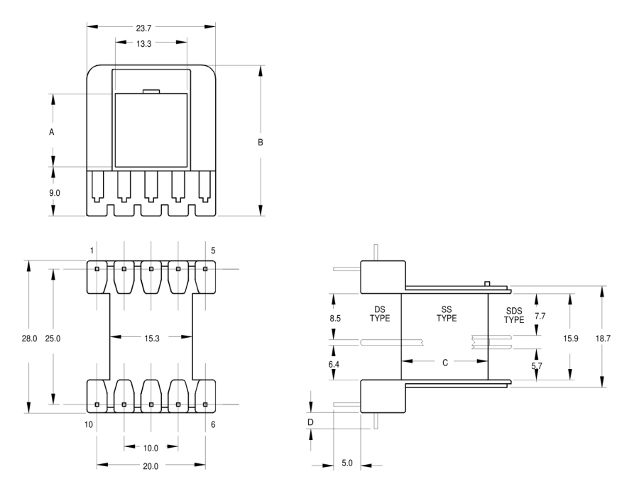 EF25 Hor 10 Pin Bobbin