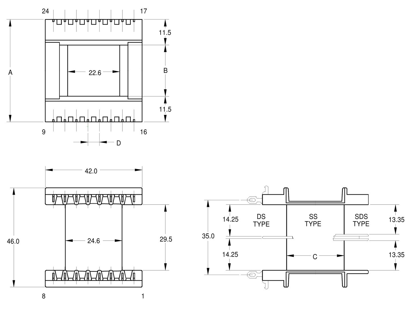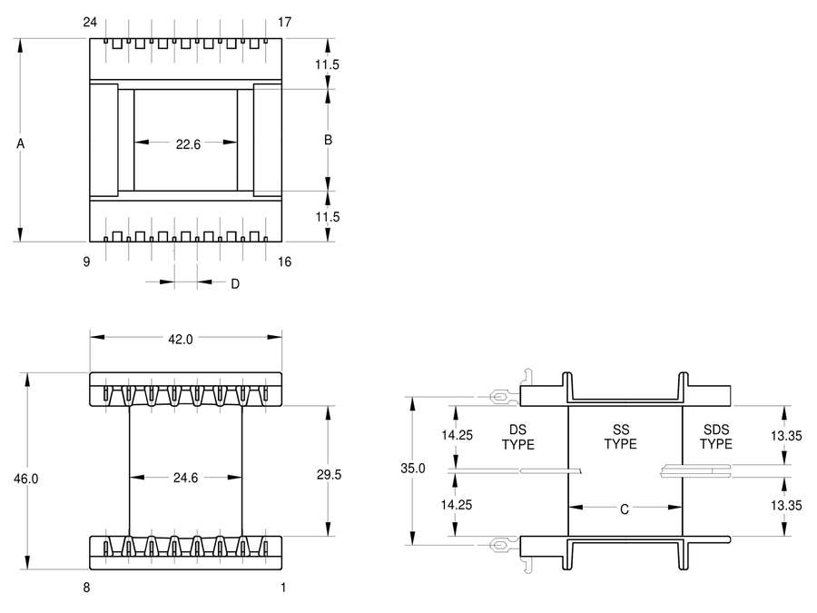 EF25 Hor 8 Pin Bobbin