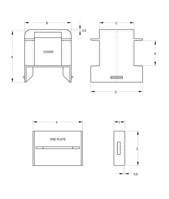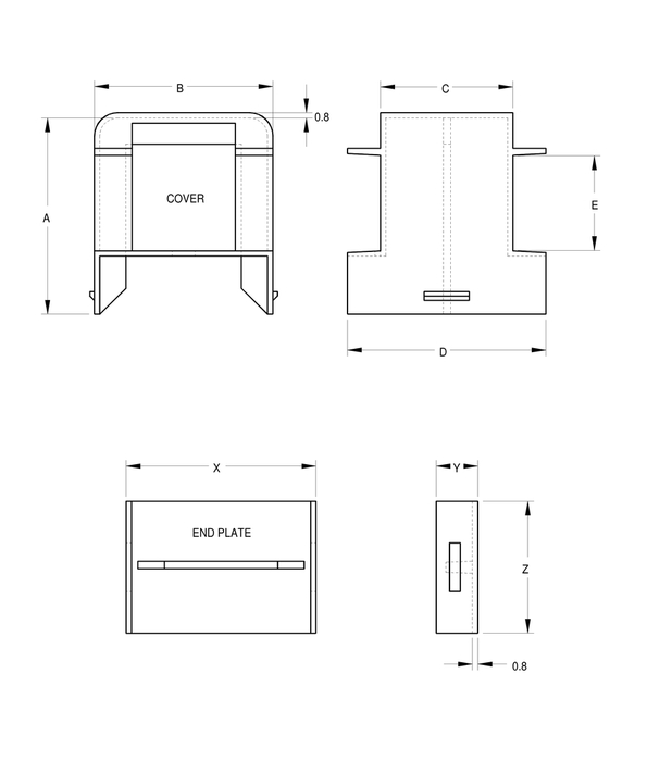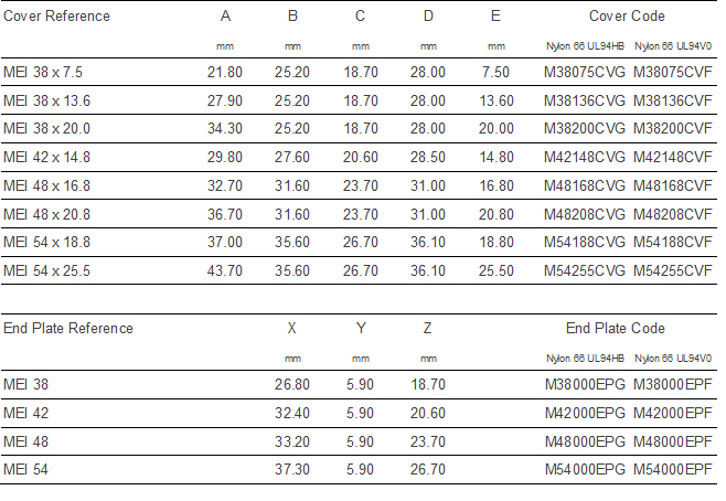 Formers MEI 'U' Cover & End Plates - dimensions in millimetres