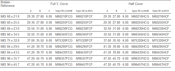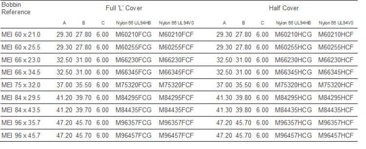 For covers with a centre rib, replace the last but one letter with 'R' i.e. M60210HRG